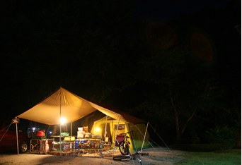 天候の悪い日のテント替わりや、テントを持っていない方も気軽にキャンプの雰囲気が楽しめます。